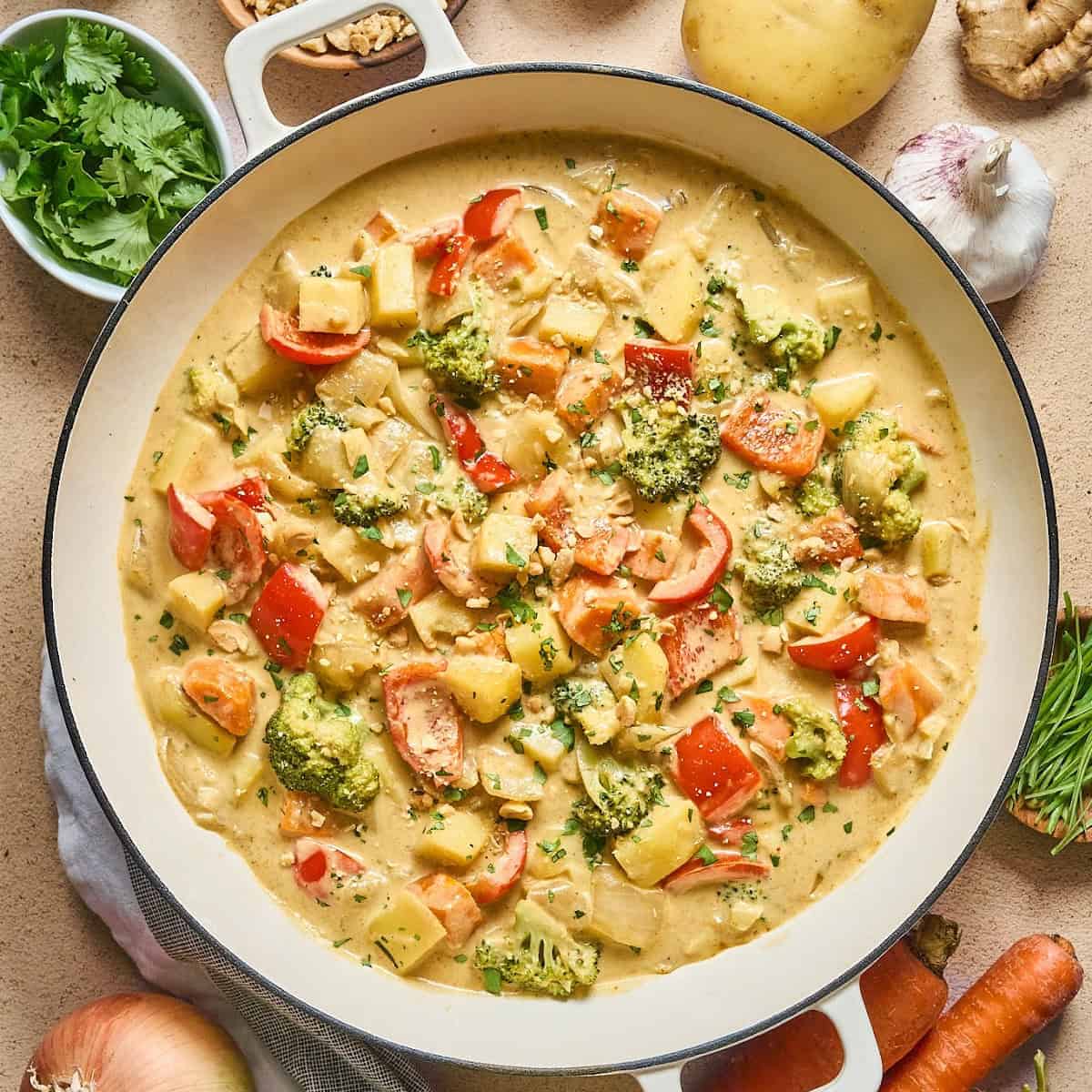 Beberapa orang menambahkan roti panggang di sampingnya untuk melengkapi hidangan. Roti ini bisa digunakan untuk menyerap kuah, sehingga setiap gigitan terasa lebih kaya rasa.